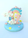 Adorno de torta unicornio arcoiris y vela Adorno de torta unicornio arcoiris y vela