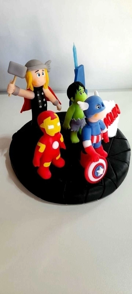 ¡Celebra a lo grande con nuestro Adorno de Torta de los Superhéroes más increíbles! Este espectacular adorno presenta a los icónicos personajes Thor, Capitán América, Hulk e Ironman, brindando un toque épico a cualquier fiesta de cumpleaños.