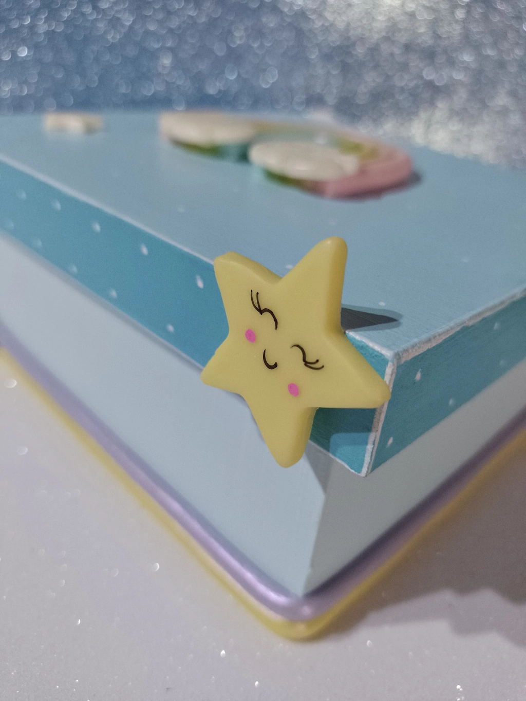 Esta caja no solo es ideal para guardar pequeños tesoros, sino que también se puede utilizar como una decoración encantadora en cualquier habitación infantil. Su diseño atractivo la convierte en un regalo perfecto para cumpleaños, baby showers o cualquier ocasión especial.