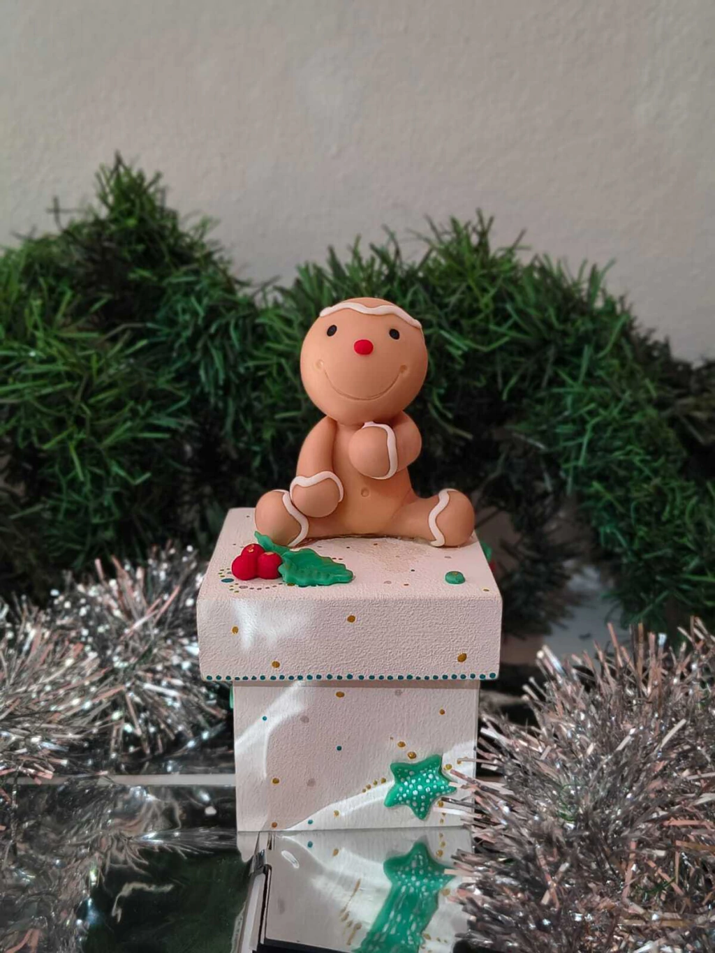 Nuestra Cajita Muérdagos y Jengibre es perfecta para decorar, regalar o llenar con dulzuras y pequeños tesoros navideños. Cada pieza está cuidadosamente pintada y decorada a mano, con detalles en porcelana fría que la convierten en un objeto único, cálido y encantador.