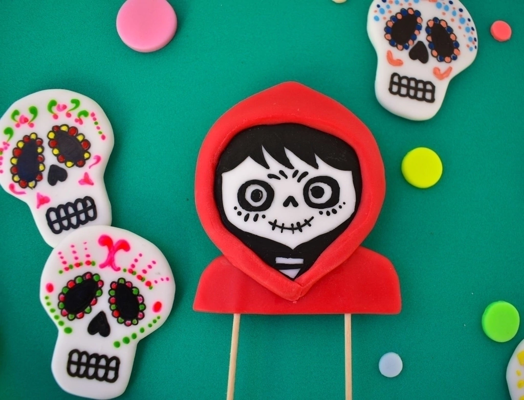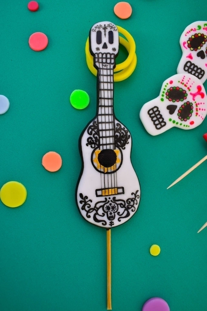 ¡Descubre nuestro adorno pinche de la película Coco, un detalle encantador que hará brillar tus celebraciones! Este set incluye una adorable carita de Coco de 7cm de alto (sin contar los palillos), una guitarra de 14cm de largo y 5 calaveras de 5x4cm. Cada calavera está dibujada y pintada a mano con una variedad de colores vibrantes, lo que aporta un toque único y artesanal a tu decoración.