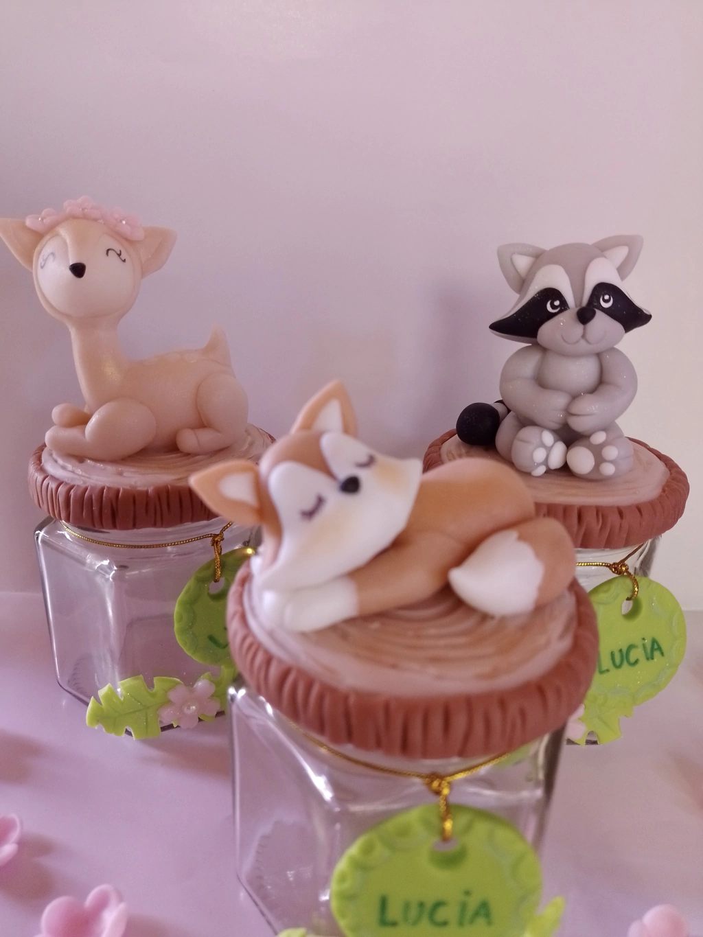 ¡Descubre la magia de la naturaleza con nuestros Frascos de Animalitos del Bosque! Este encantador pack incluye un surtido de tres adorables personajes: un ciervo, un mapache y un zorro, todos modelados a mano en porcelana fría.
