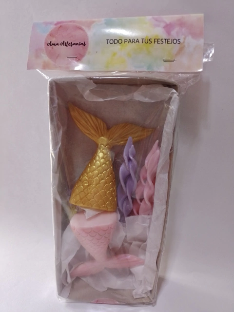 ¡Añade un toque mágico a tus celebraciones con nuestro Kit de Colitas de Sirenas! Este encantador conjunto incluye 2 colas de sirena de 9 cm de alto, acompañadas de un set de apliques de algas y ostras, perfectos para completar la temática de tus fiestas.