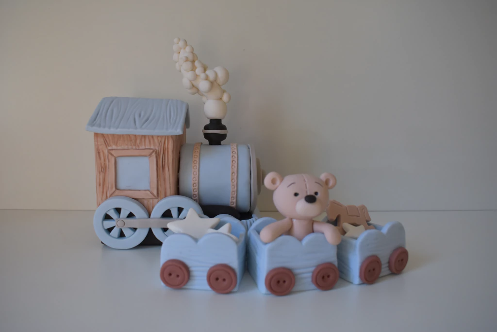 ¡Decora la torta de tu celebración con nuestro encantador Adorno de Torta de Osito con Tren! Este detalle artesanal es perfecto para añadir un toque de alegría y ternura a cualquier fiesta infantil.