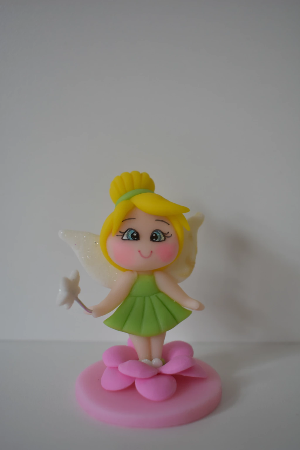 Está completamente hecho a mano en porcelana fría, con detalles delicados como sus alas con brillo, su varita estrellada y base en forma de flor.